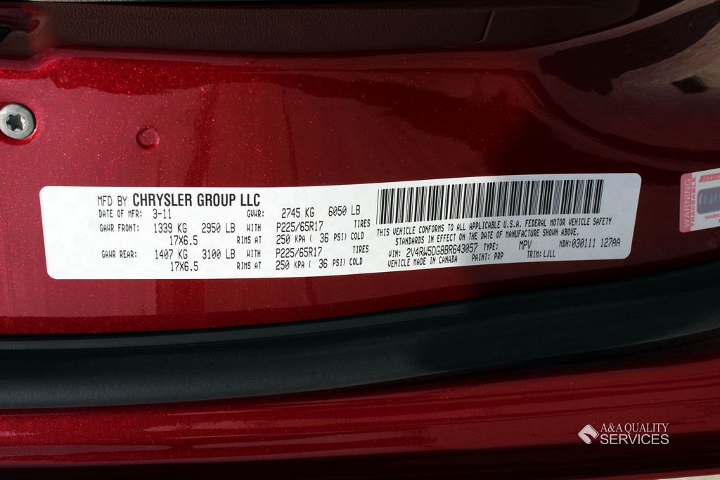 | Transmission: | Automatic | Engine: | 6 Cylinder 3.6L | VIN: | 2V4RW5DG8BR643057 |